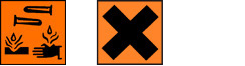 Dieses Piktogramm warnt vor Stoffen und Gemischen, die gegenüber Metallen korrosiv wirken (Signalwort „ACHTUNG“), oder Produkten, die schwere Verätzungen der Haut und schwere Augenschädigungen (Signalwort „GEFAHR“) herbeiführen.