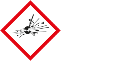 Diese Produkte sind explosionsgefährlich – auch ohne Beteiligung von Luftsauerstoff – durch Schlag, Reibung, Feuer oder andere Zündquellen mit Wärmeentwicklung und unter schneller Entwicklung von Gasen.
