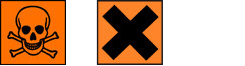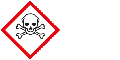Dieses Piktogramm warnt vor akuter Toxizität (Gefahr der Vergiftung) mit einer Vergiftungsgefahr zwischen „Lebensgefahr“ oder „giftig“ bei Verschlucken, Hautkontakt, Einatmen.
